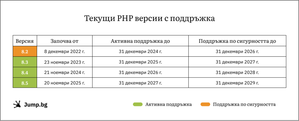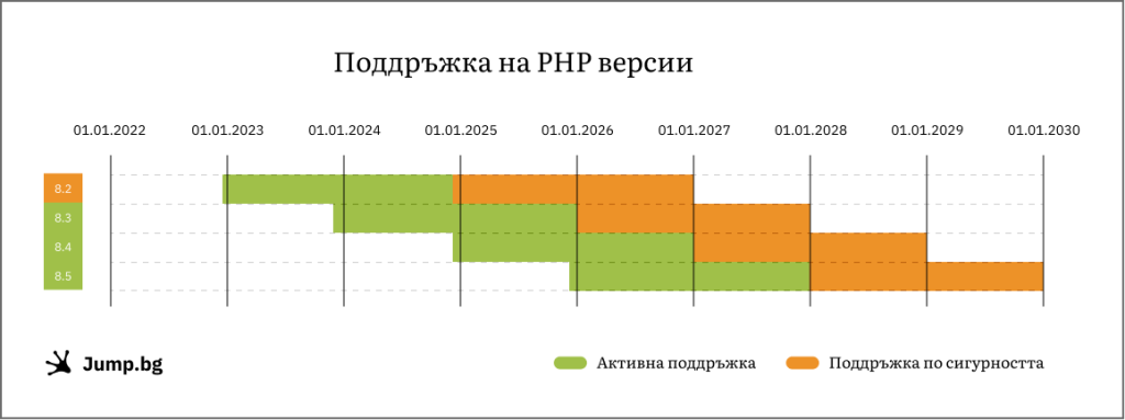 На първо място, нека видим графиките за продължителността на живот на различните PHP версии.