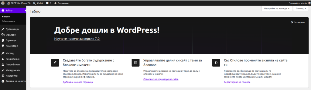 Освен в различните функционалности, WordPress 7.0 идва и с подобрена визия на административната си част. Много изчистена и модерна визия, с промяна на типографията на шрифтовете. Допълнителнo и плавно преминаване с fadeout ефект от едно меню към друго, което прави превключването много по-приятно визуално.