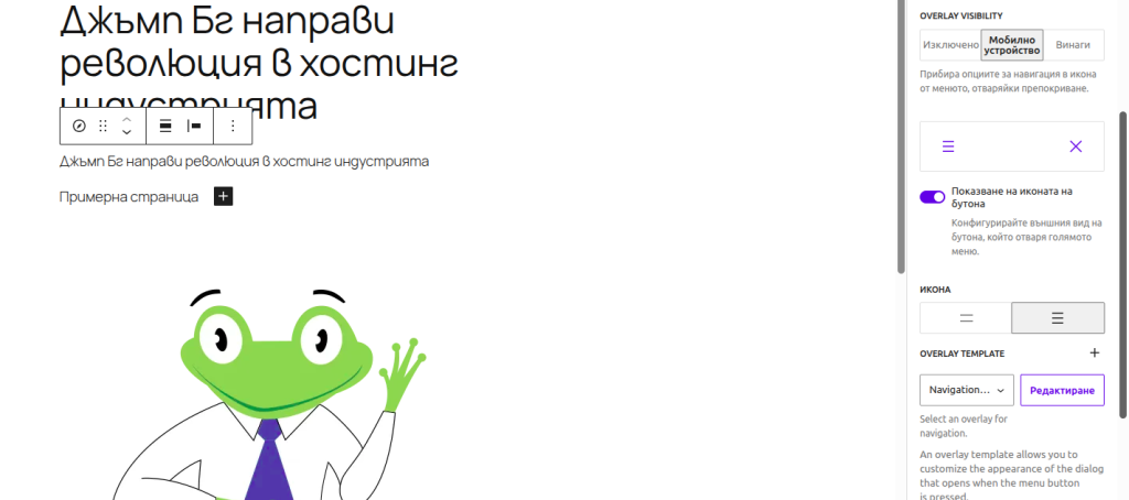 Много често когато създаваме страница е трудно да разберем как тя точно би изглеждала на мобилната версия и по-специално навигацията. За да имаме повече контрол за това как ще изглеждат менютата на телефона или таблета, WordPress прави подобрения в блок “Навигация”