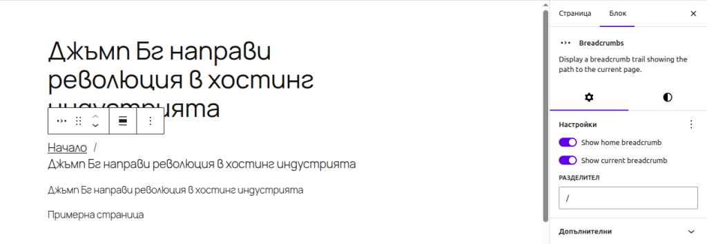 Новите блокове “Breadcrumbs” и “Icons”