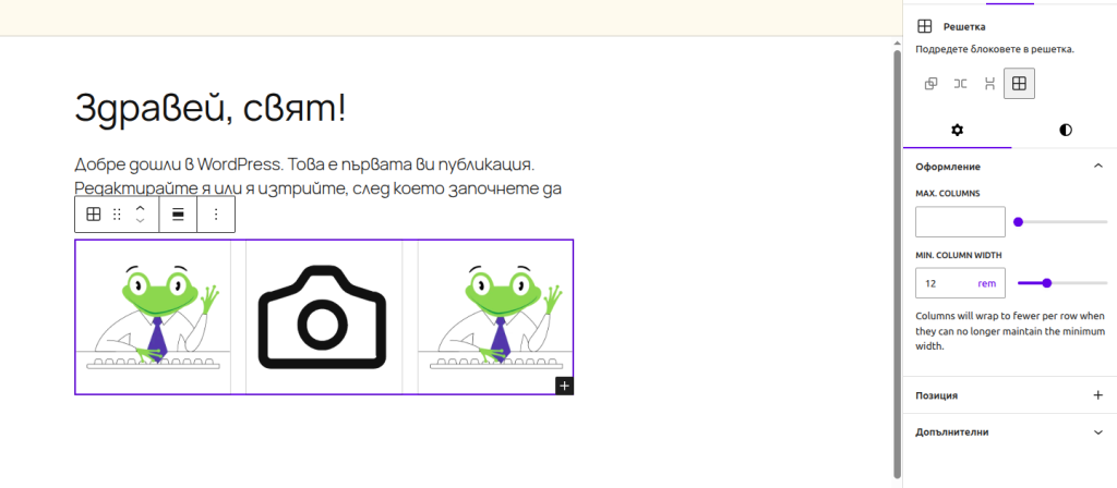 Изключителни подобрения в адаптивността на сайта ще предложи новата версия на WordPress 7.0. При промяна на размера на решетката самият блок адаптира включените в нея елементи, без да е необходима промяна на отделните колони, като променя позицията им спрямо тяхната големина. Така се гарантира, че никой от блоковете няма да остане невидим или отрязан при скалиране на самата решетка.
