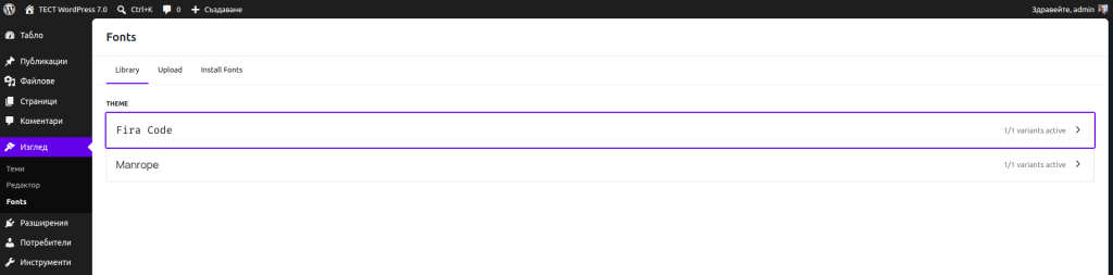 Ако до сега библиотеката на шрифтовете не беше достъпна за блок темите, то WordPress 7.0 внася промяна и тук, като вече самата библиотека е достъпна за всички налични теми.