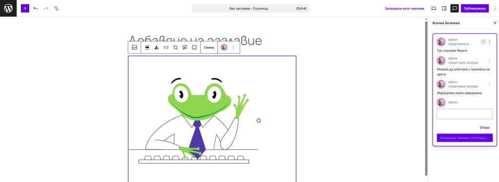 Добавен е и режим на “споменаване”, ако искате да адресираме бележката до определен потребител можете да използвате “@” в текста, който оставяте.