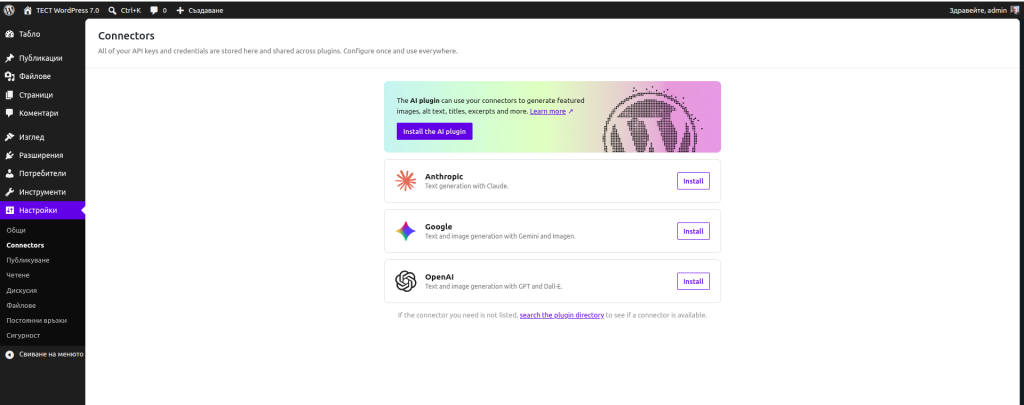 - Web Client AI API във WordPress;