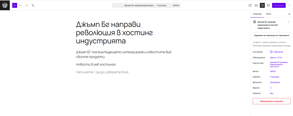 Заглавията са изключително важна част от всяка една статия, за да бъде тя добре структурирана и да бъде индексирана правилно. Затова и блока “Заглавие” е изключително важен. Тук ще забележим една съвсем малка промяна, която дава улеснение при работата със заглавията в страницата - добавена е опция с едно натискане да можете да промените големината на съответното заглавие.