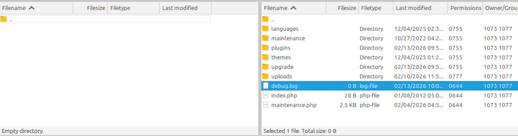 След активиране на debug режима, WordPress започва да записва грешките в debug.log файл.